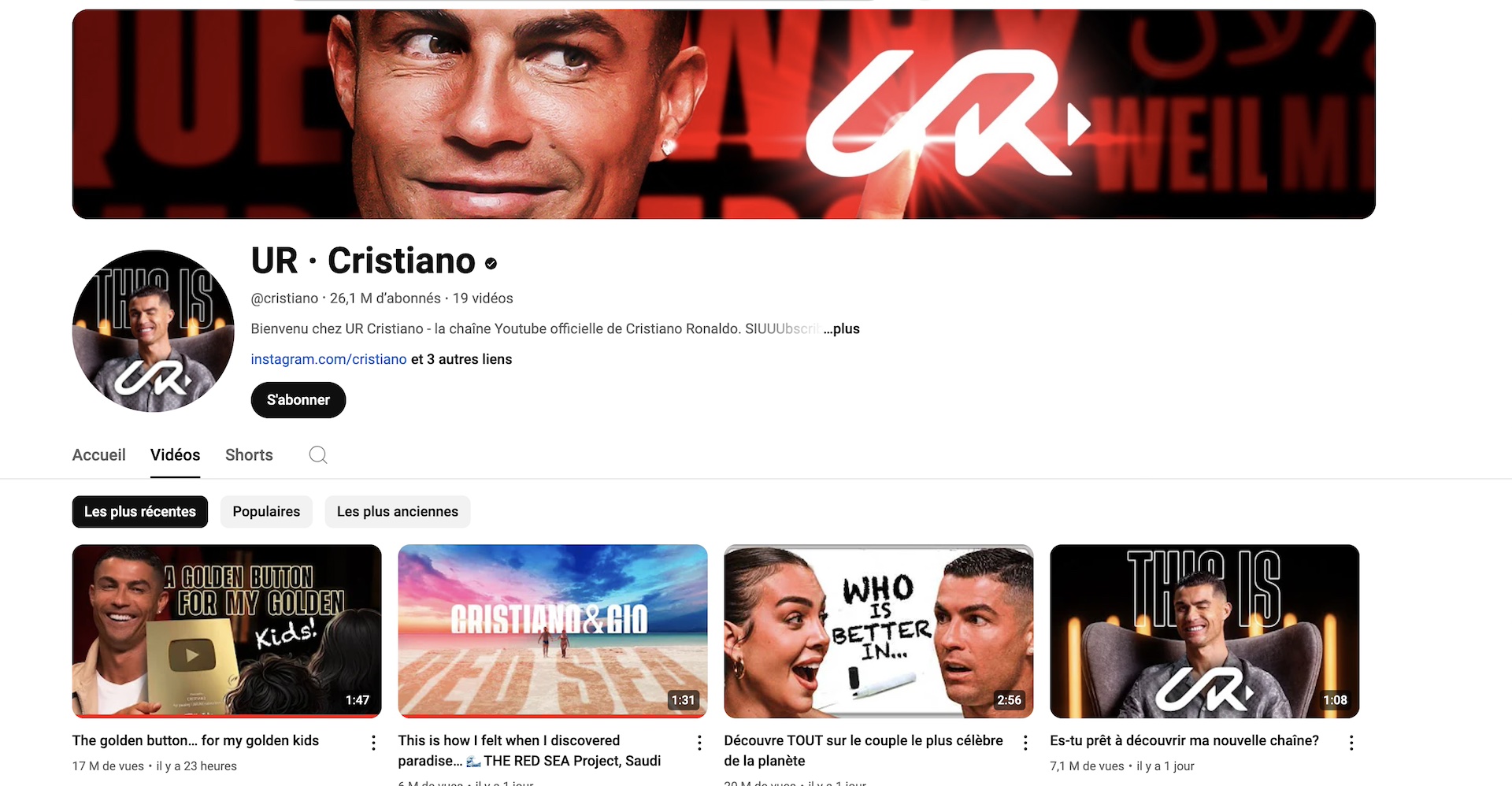 بلغ عدد المشتركين في قناة كريستيانو رونالدو أزيد من 26 مشترك خلا يوم واحد بعد إطلاق قناته على موقع “يوتيوب”، حيث من المحتمل أن يحطم رقما قياسيا جديدا على هذه المنصة.